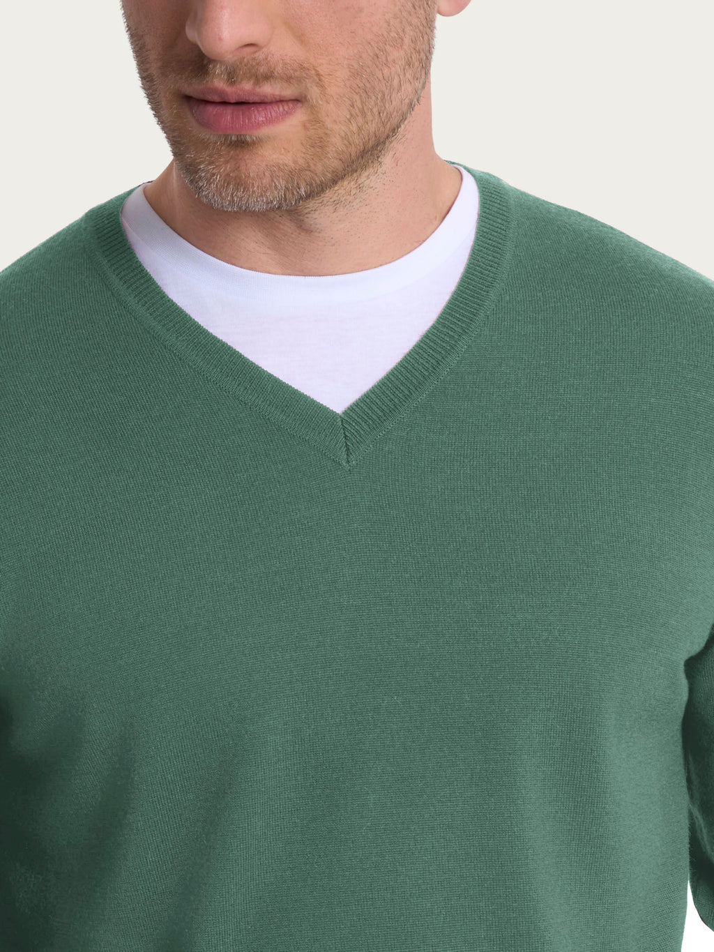 Pull con scollo a V in maglia unita in Merino Soft - Dark Forest