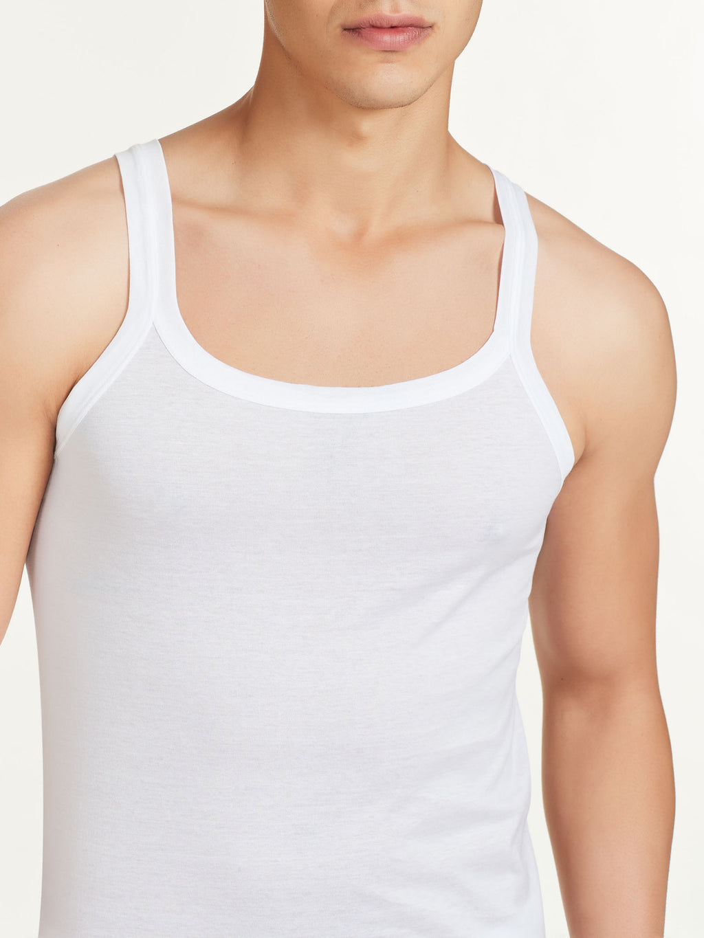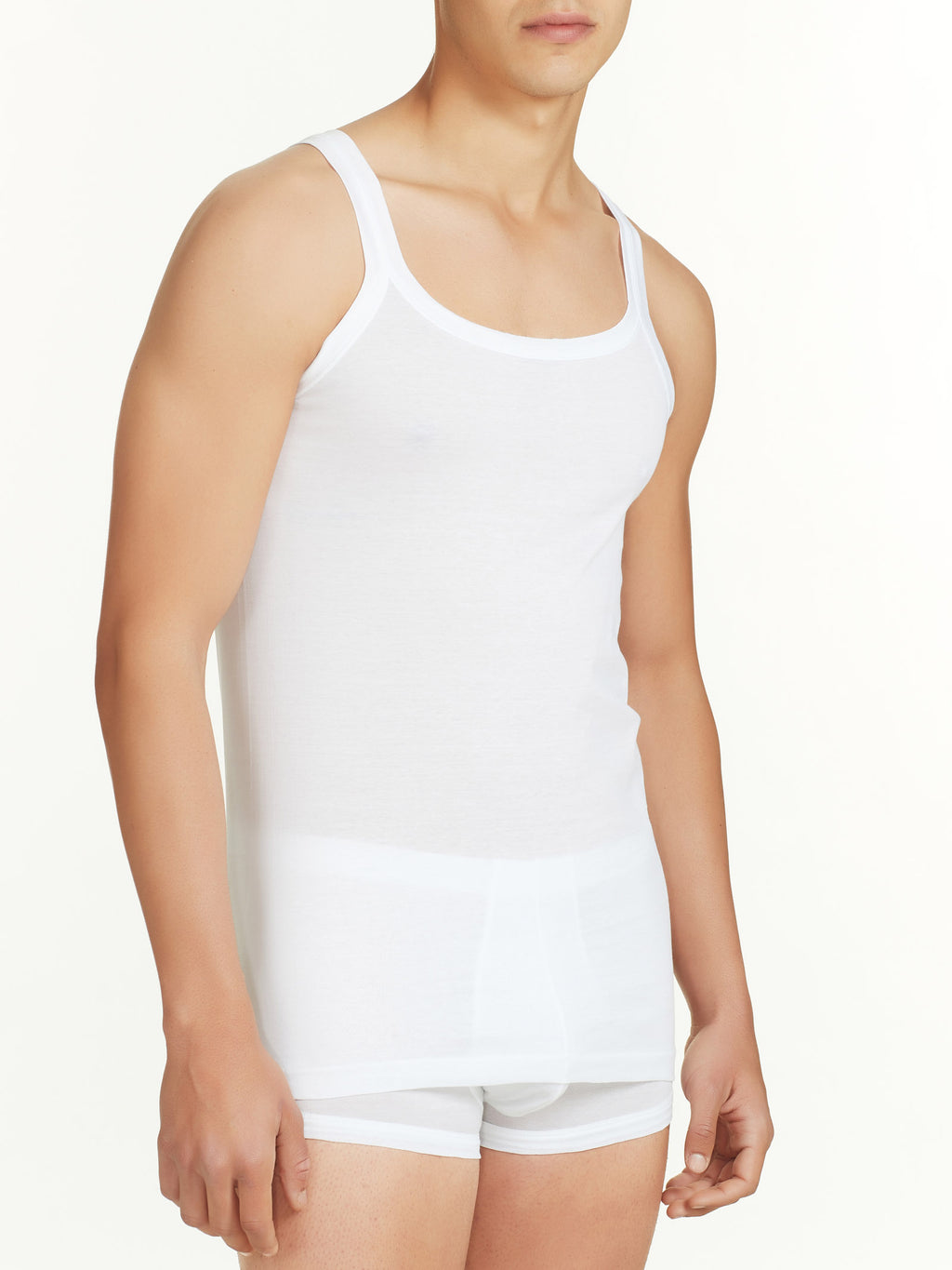 Canottiera a spalla stretta in puro cotone mercerizzato.