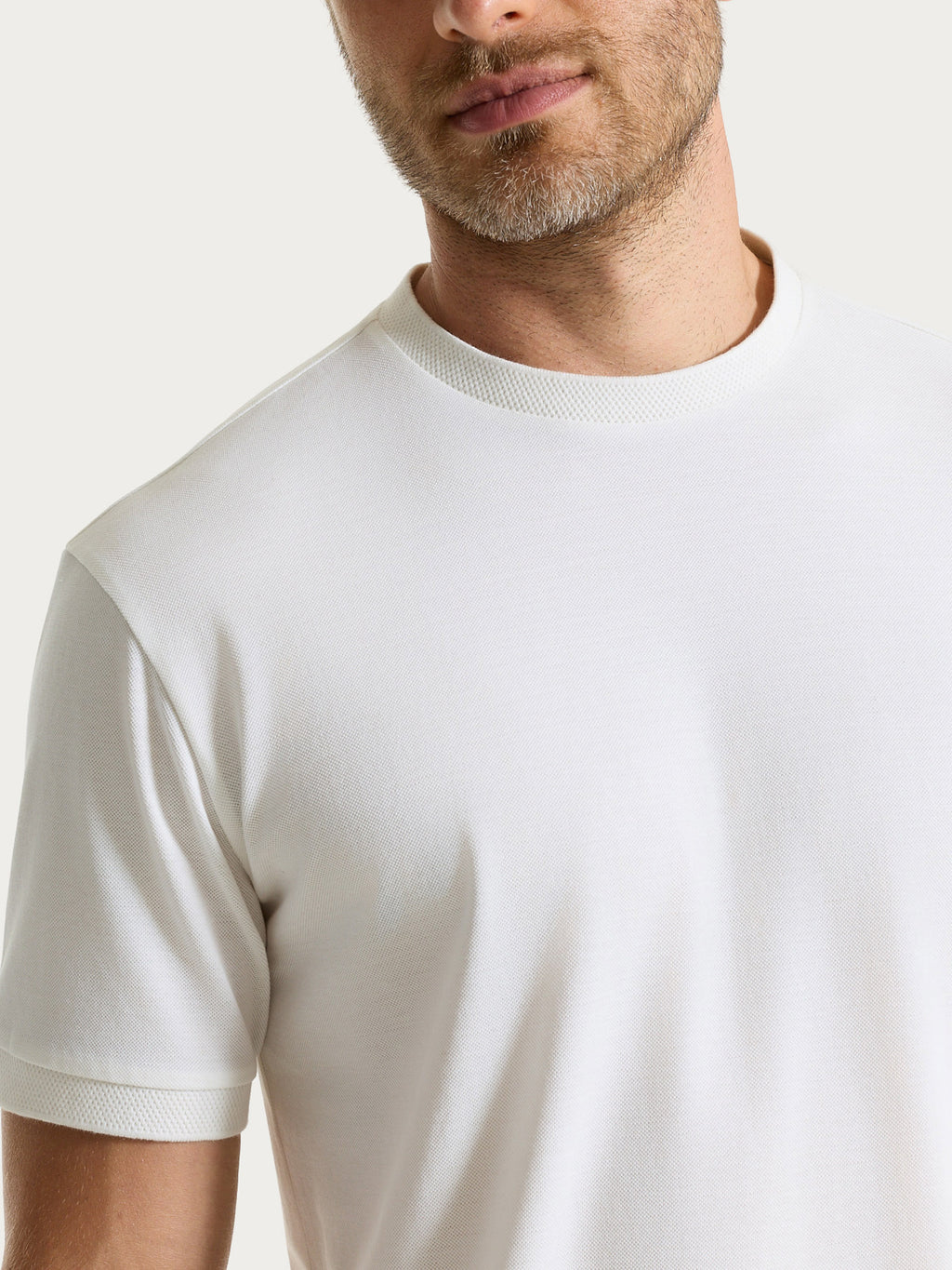 T-shirt girocollo da uomo a manica corta in piquet double mercerized di puro cotone.