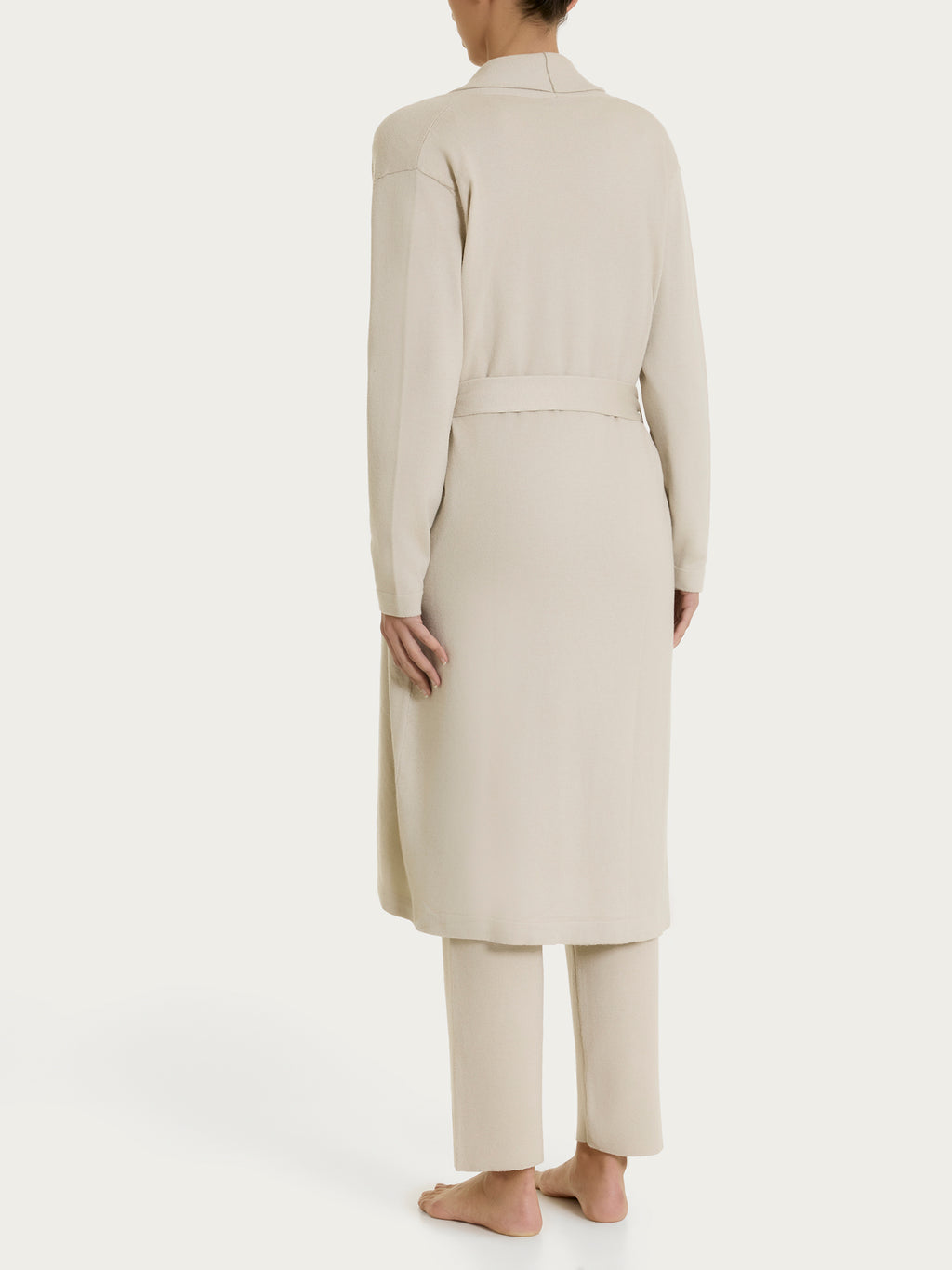 La cintura in tinta consente di regolare il capo con facilità, adattandolo alla propria silhouette e alle preferenze personali. Perfetto da sovrapporre ad altri indumenti nella stessa tonalità, permette di creare un look monocromatico raffinato e armonioso.