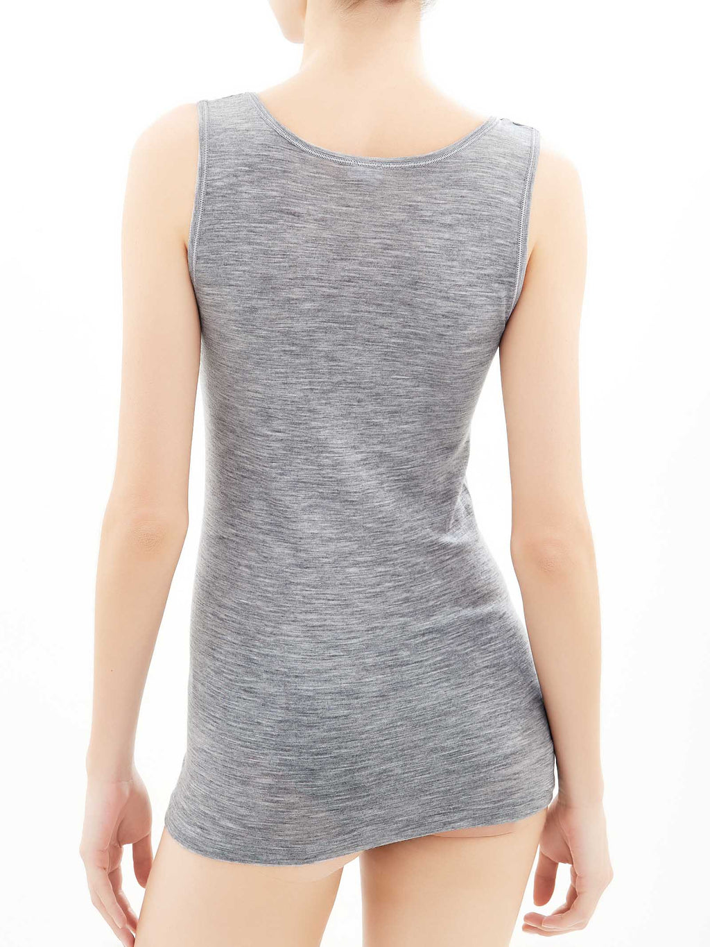 Canottiera a spalla larga in maglia unita di pregiata pura lana ultrafine, sottile e naturale.