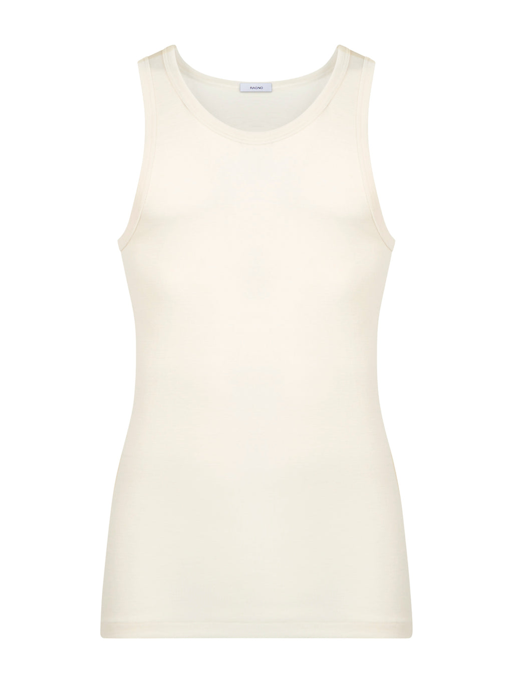 Canottiera a spalla larga in preziosa maglia unita di lana e seta.Questo capo fa parte della linea WSK che coniuga le incredibili proprietà termoregolanti e traspiranti della migliore lana extrafin...