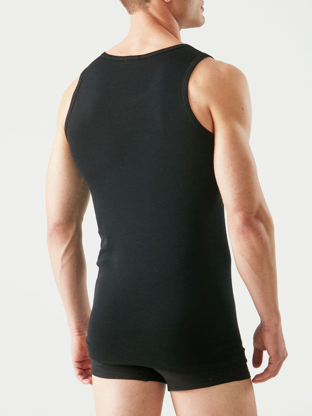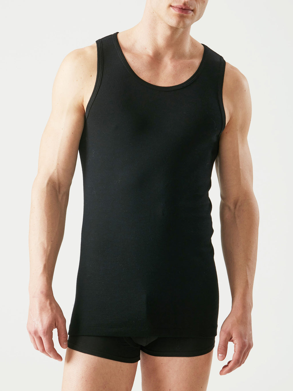 Canottiera a spalla larga in preziosa maglia unita di lana e seta.Questo capo fa parte della linea WSK che coniuga le incredibili proprietà termoregolanti e traspiranti della migliore lana extrafin...